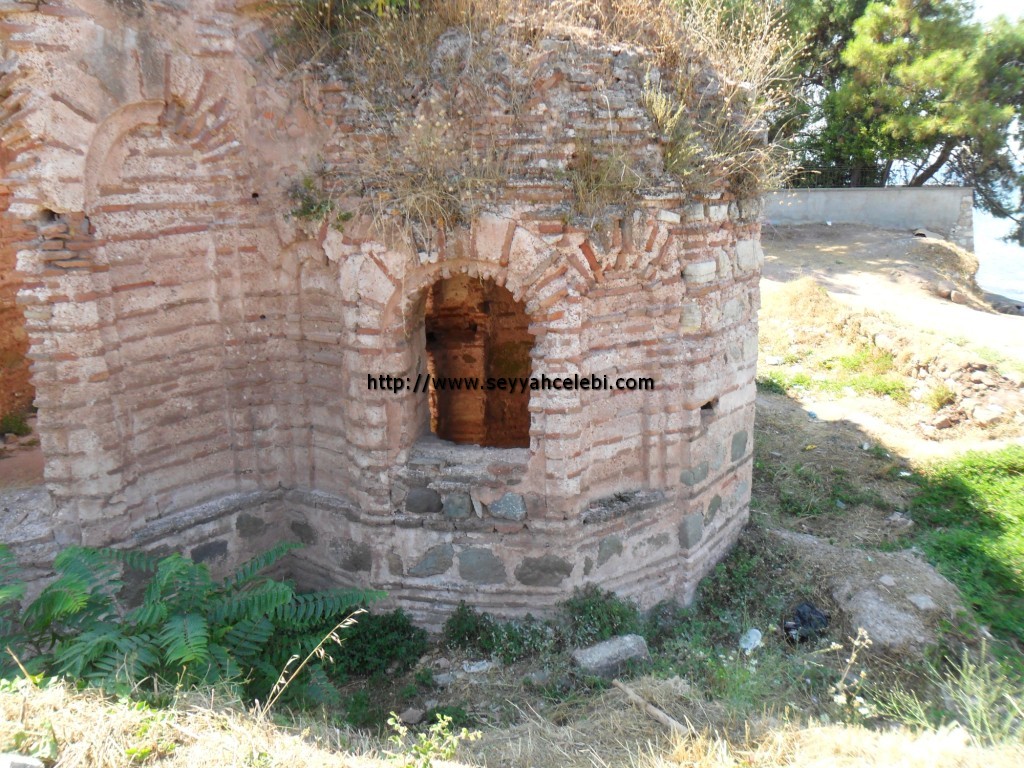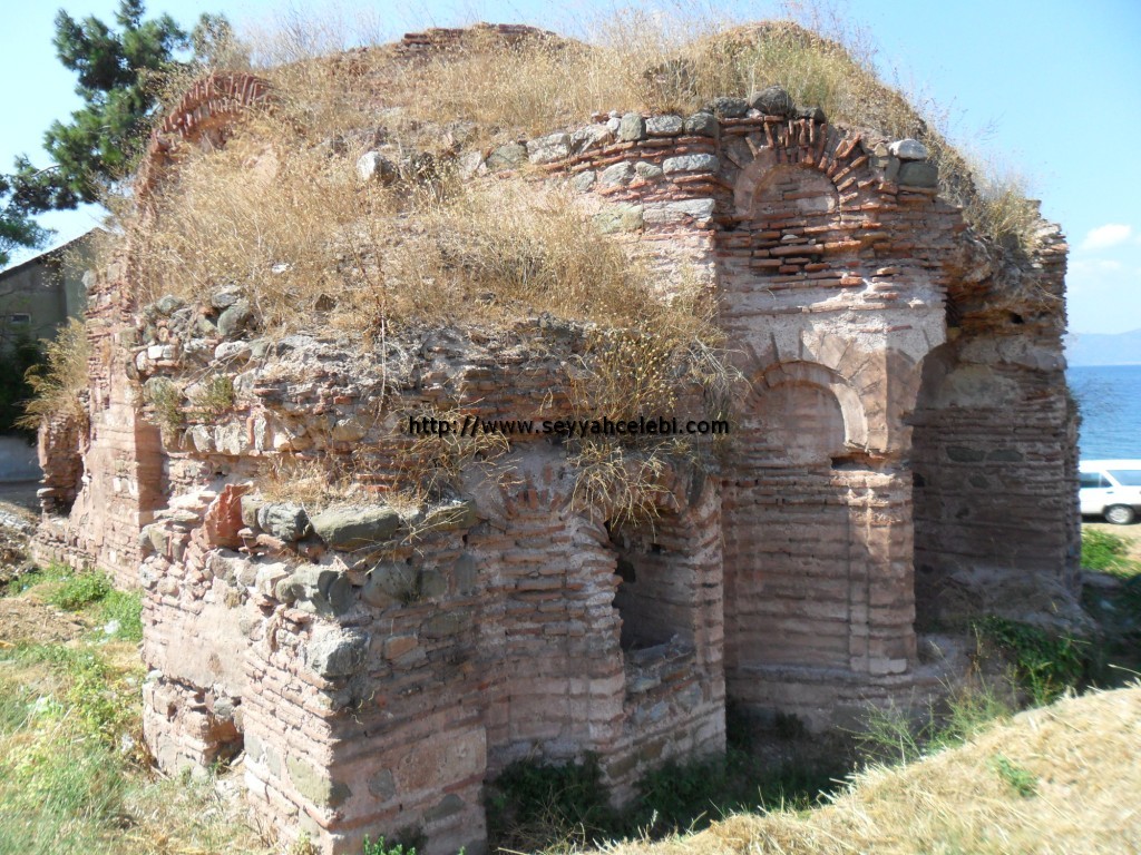 Kurşunlu da ikamet ediyorum. Her ne kadar tabelada 9.yy yazsa da; yabancı kaynaklardan okuduğum kadarıyla Elegmi(Kurşunlu)’de 12.yy katolik manastırı olarak kullanılıyormuş. Mimari yapısı tipik, bilinen Yunan Hacı şeklinde. Üst kubbesi 5 m çapında. Bunun dışında, iç ve dış mimarisi o dönemin çağdaş Konstantinopolis mimarisini yansıtıyormuş. Kilise duvarlarının alt kısmı OPUS MIXTUM(Antik Roma Tekniği) tekniğiyle inşa edilmiş. Bu inşaat tekniği, birçok katolik kilisesinde hala kullanılıyor. Bu tarzdaki ve büyüklükteki çağdaş kiliseler o dönemde daha çok taşralara inşa edilirmiş. Çevrede yaşayan birkaç kişiden duyduğuma göre kilisenin devamı (gördüğüm kiliselrle kıyasladığımda muhtemelen bahçenin devamı) denizin altında kalmış. Midilli adasındaki köyleri dolaşırken aynı mimari yapıya sahip bir çok kilise görmüştüm. Hemen hemen boyut ve büyüklük olarak bu kiliseyle aynıydı. Bu sene içerisinde kilisenin restorasyonuna başlanacağı söylenmişti. Umarım atıl durumda kalmaz.